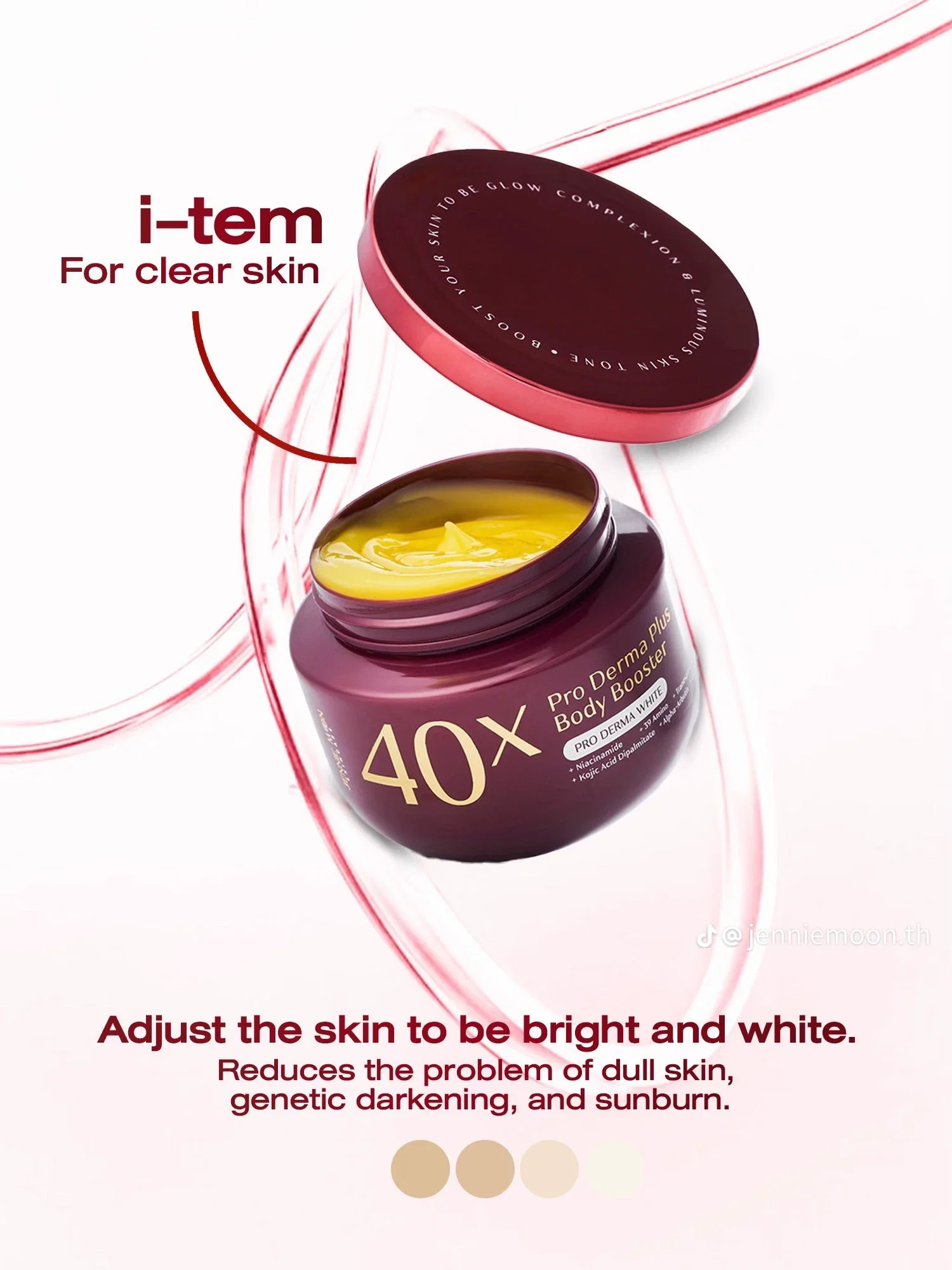 Experience next-level body care with Jennie Moon 40X Pro Derma Plus Body Booster, a luxurious gel-cream formulated with 40X Active Whitening Complex to reveal smoother, brighter, and more radiant skin. This fast-absorbing body booster deeply nourishes while helping to even out skin tone and fade dark spots for a visibly luminous glow.