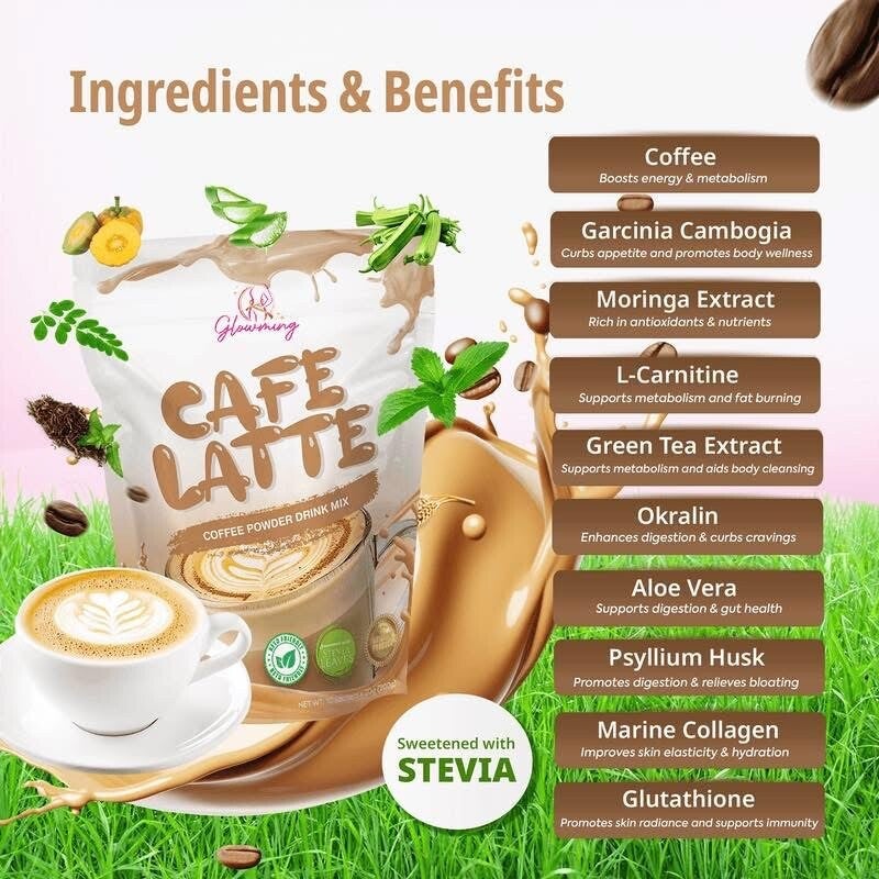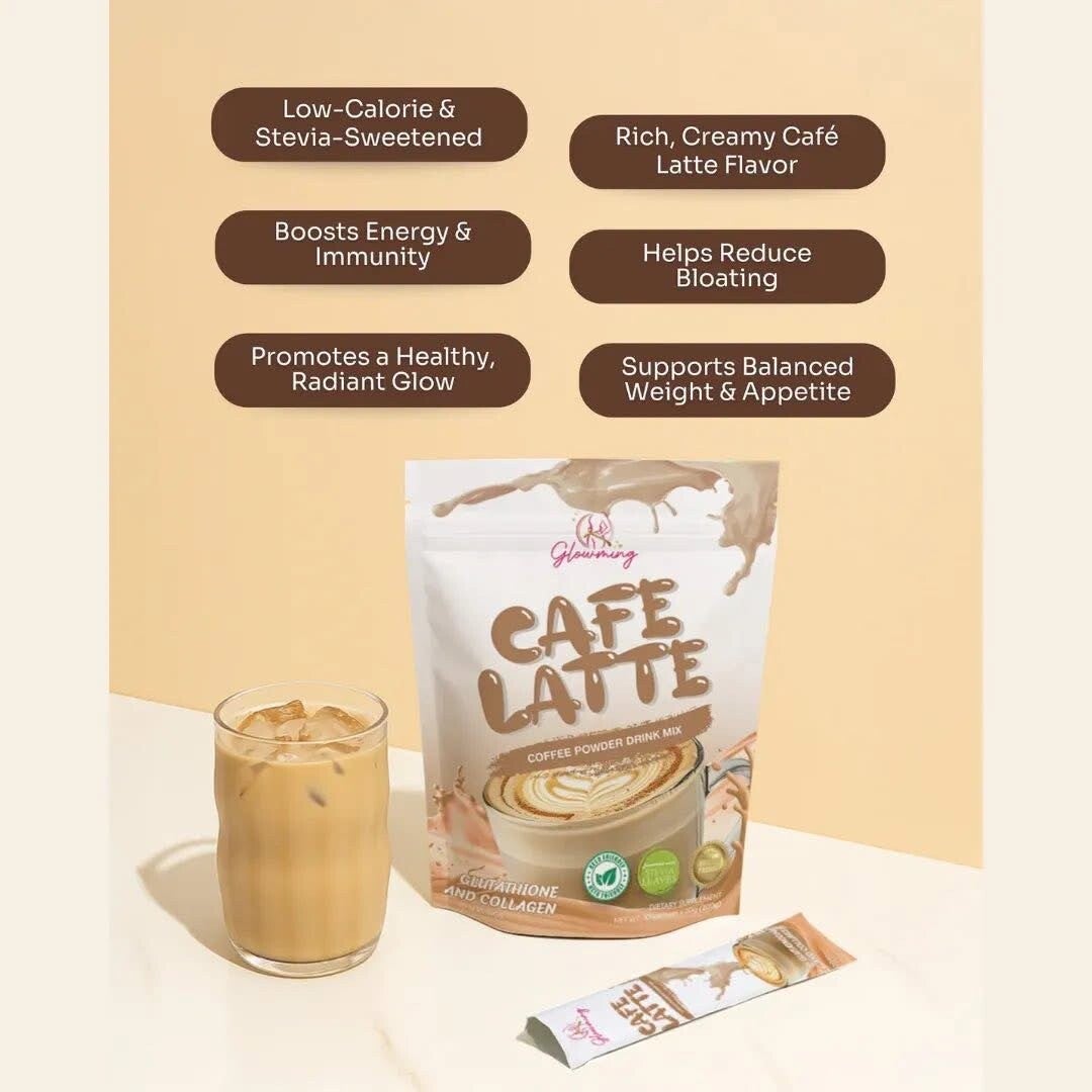 Elevate your daily wellness routine with Cris Cosmetics Glowming Café Latte Coffee Powder Drink Mix. This deliciously rich and creamy blend combines the power of Glutathione and Collagen to support your skin health and promote a radiant, youthful glow.