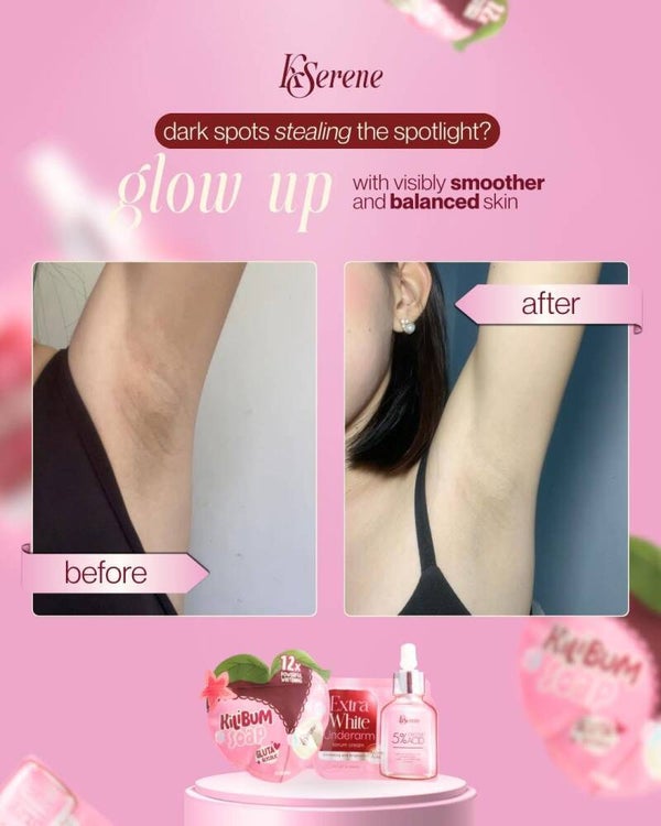 Arms up, glow out. ✨ This Extra White Underarm Serum Cream gently brightens and smooths for a clean and even-toned finish. Embrace softness and confidence every lift, move, and moment! ♥️