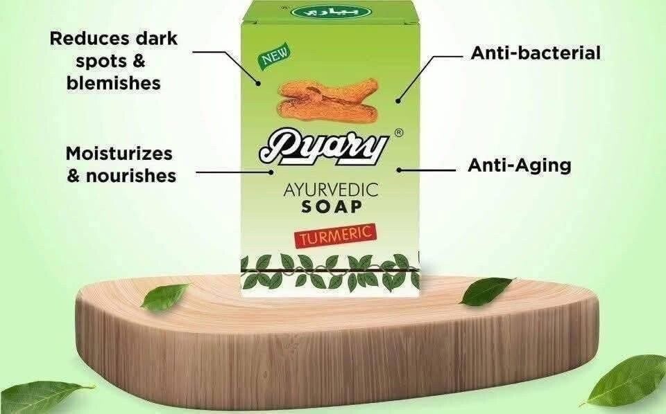 Discover the remarkable benefits of Pyary Turmeric Soap bar which is made of Indian natural herbs, elevating your daily cleansing routine and bestowing upon you nourished and radiant skin with every use.