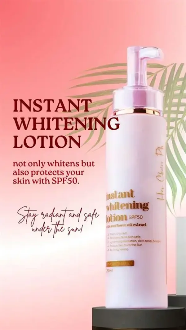 Her Choice Ph's Instant Whitening Lotion is an alpha-moisturizing lotion enriched with skin-friendly ingredients. It has a lightweight formula with an instant luminous whitening effect to give a visible glow right from the first application. It moisturizes, whitens and nourishes skin without any sticky feeling!