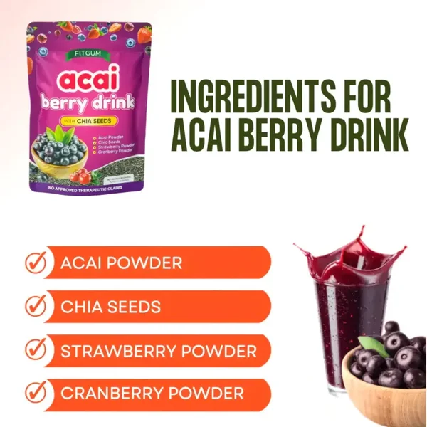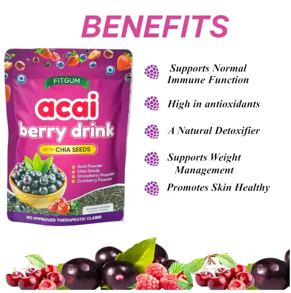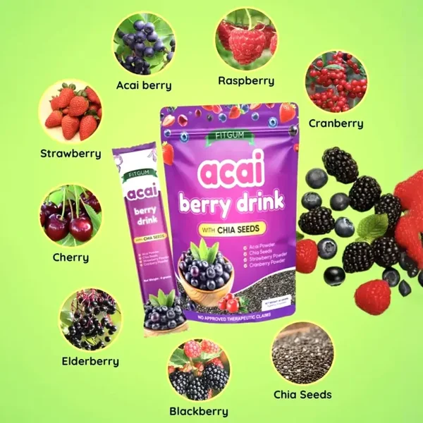 Fitgum Acai Berry Drink with Chia Seeds – 40g (10 Sachets x 4g)
